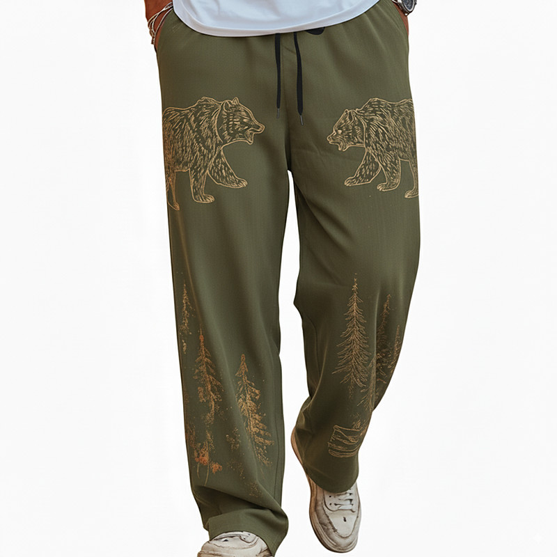 Men's Bear Forest Pants Trousers Casual Pants Mid Waist Drawstring Elastic Waist Vintage Retro Outdoor Camping Hiking Hunting Straight Leg Trousers Spring Fall 3D Print Brown Green Dark Blue