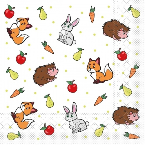 Mank Serviette Tissue Polly, 33 x 33 cm, 100 Stück - Hase Fuchs Igel