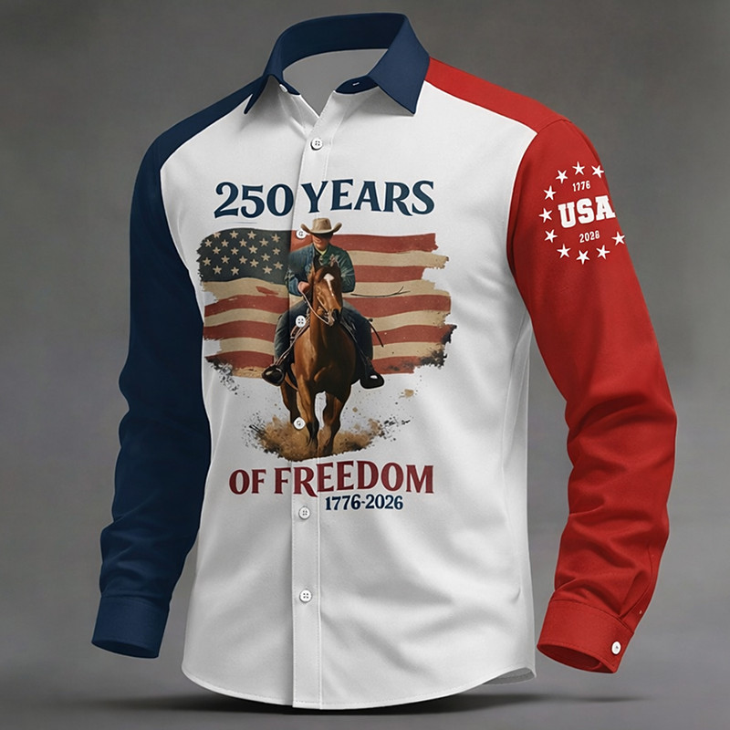 Men's US Flag Freedom America's 250th Anniversary Shirt Button Up Shirt Long Sleeve Vintage Retro Holiday Casual Daily Spring Fall Turndown 3D Print Linen Like Shirt White Red Dark Blue