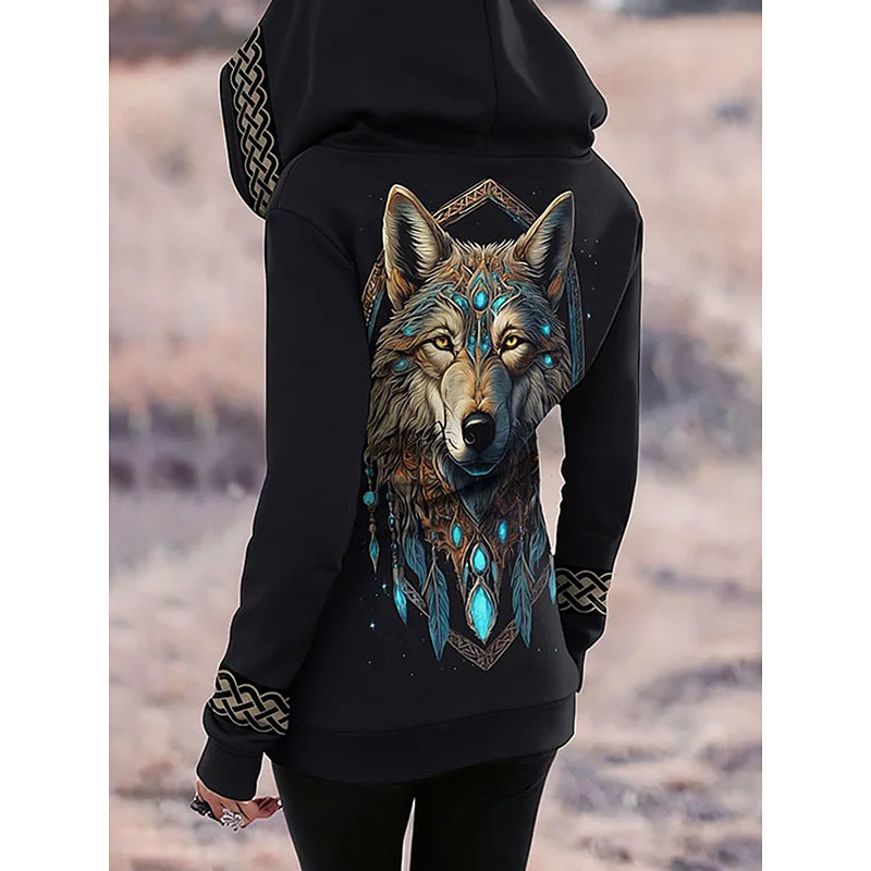 Women's Pullover Hoodie Sweatshirt Graphic Animal Tribal Casual Long Sleeve Hooded Regular Tops Casual Street Print Blue Spring Fall Winter