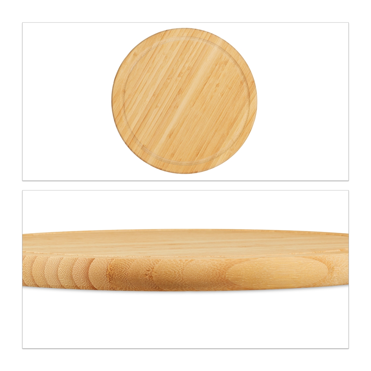 Relaxdays Frühstücksbrettchen rund 2er Set, Bambus, 30 cm, Küchenbrett, pflegeleicht, natürlich, messerschonend, natur
