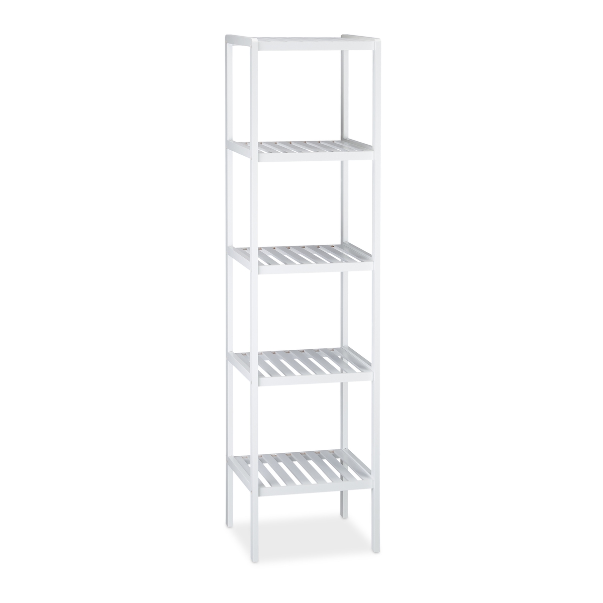 Relaxdays Bambus Badregal mit 5 Ablageflächen, HxBxT: 139,5 x 34,5 x 33 cm, hohes Standregal, Küchenregal, weiß