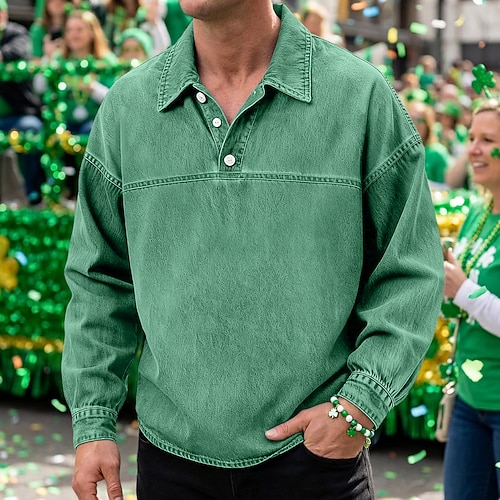 Per uomo Polo Casuale Vacanza Collo ripiegato Classico Manica Lunga Moda Essenziale Tinta unica Semplice Stile Vintage Lavato Primavera Inverno Primavera Autunno Vestibilità comoda Nero Verde