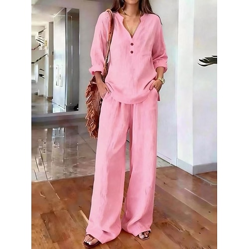 Per donna Set di biancheria in cotone Manica Lunga Scollo a V Semplice Vacanza Essenziale Casuale Quotidiano Blu Nero Rosa Estate Vestibilità comoda