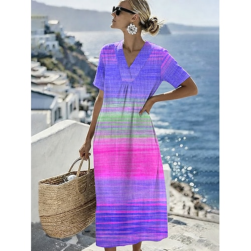Per donna Abito Midi Abito a Tubino Vestito Estivo Vacanza Casual Spiaggia Quotidiano Uscire Vestibilità comoda Ombre Grafico Manica Corta Scollo a V Blu Rosa Viola Arancione Estate Primavera
