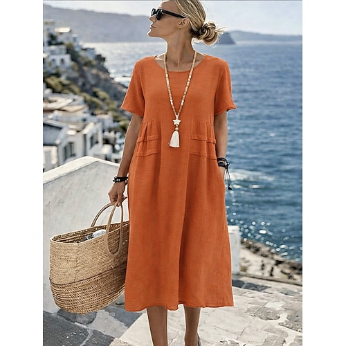 Per donna Abito Midi Abito a Tubino Abito Estivo Casual Quotidiano Vestibilità comoda Semplice Manica Corta Girocollo Arancione Estate Primavera Autunno