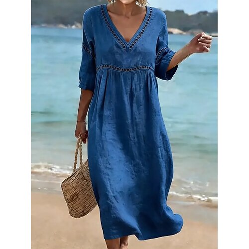 Per donna Abito Midi Abito a trapezio Casual All'aperto Spiaggia Uscire Vestibilità comoda Tinta unica Manica 3/4 Scollo a V Blu Nero Giallo Rosa Estate Primavera