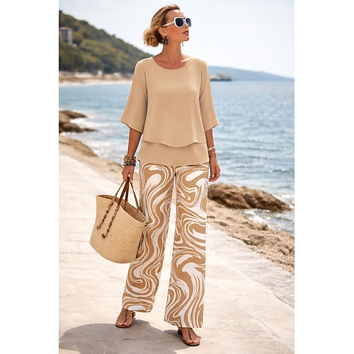 Per donna Set di Pantaloni Mezza Manica A farfalla Girocollo Grafico Geometrico Elegante Vacanza Casuale Quotidiano Spiaggia Blu Verde Cachi Primavera Estate Vestibilità comoda