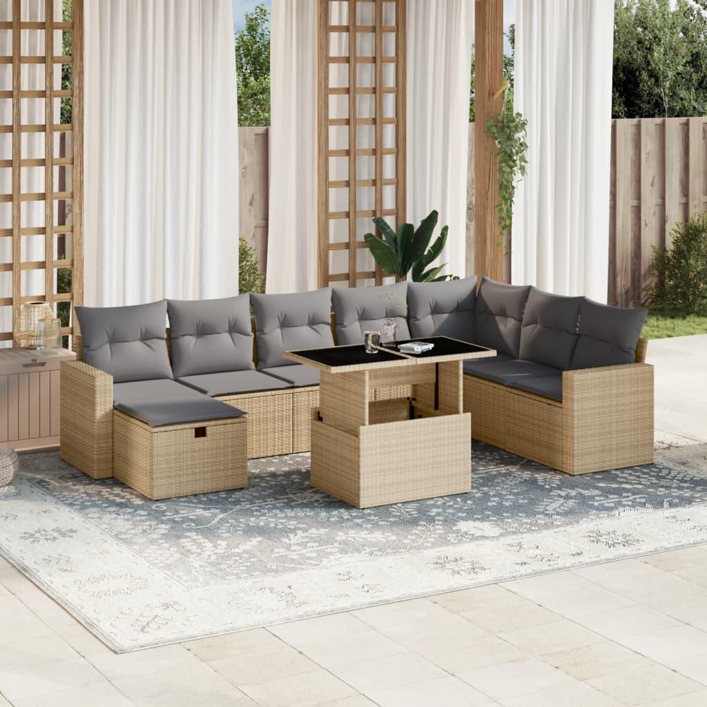 Sofasæt til haven 9 dele med hynder polyrattan grå