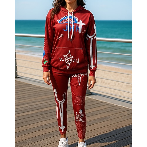Per donna Tuta da 2 pezzi Felpa con cappuccio Lounge Set di tute da ginnastica Tasca Stampato Completo Abbigliamento Autunno Nero Bianco All'aperto Viaggio Sportivo Traspirante Manica Lunga Sport