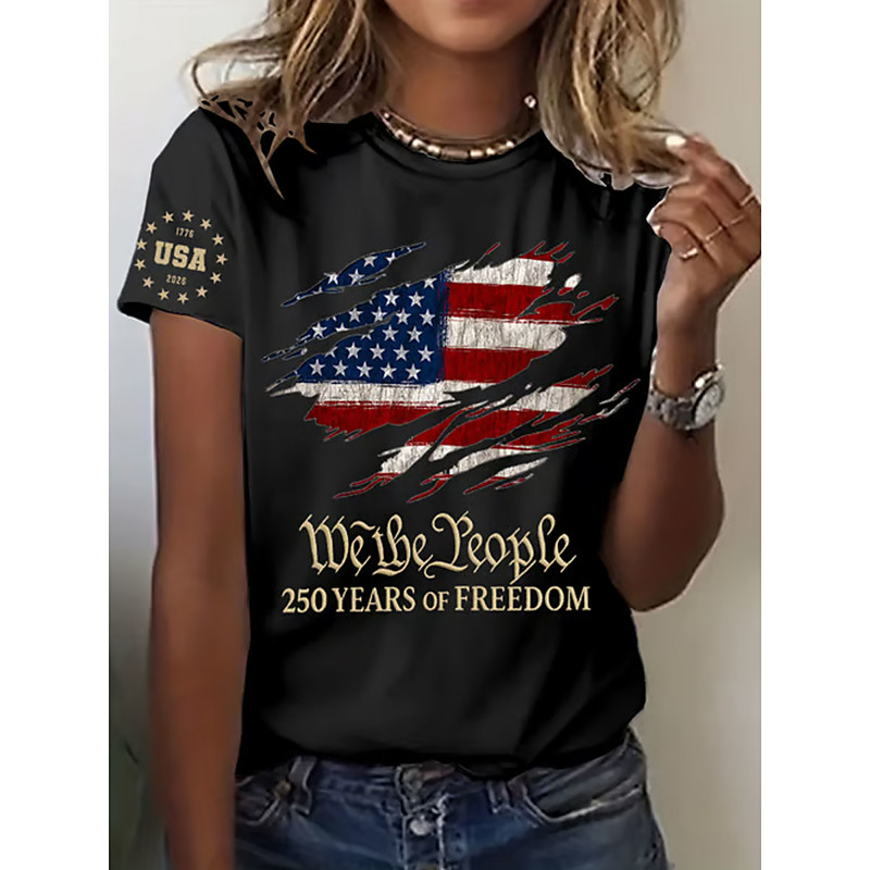 American 250th Women's Patriotic T Shirt Graphic Flag Vintage Stylish Classic Short Sleeve V Neck Regular Tops Daily Print Black Navy Blue Dark Gray Summer Spring