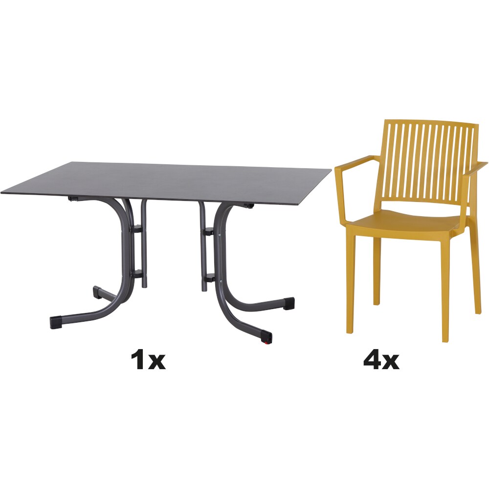 SIENA GARDEN Urban Lights Set 5teilig Lane Sessel gastrotauglich mustard mit Tisch Sola 140x90
