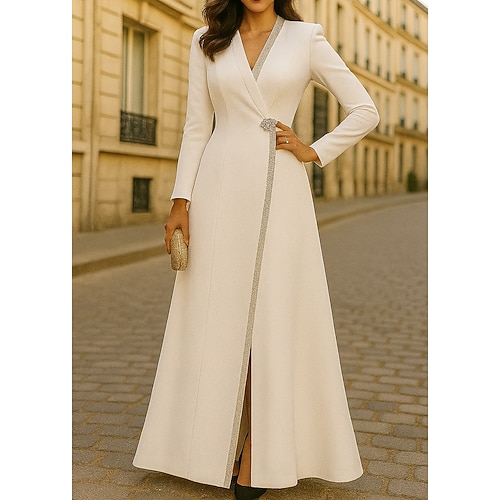 Linea ad A Tubino Colonna Lunghezza al pavimento Perline ricamate Abito da invitata a nozze Abito Formale Abito da cerimonia per signora Manica 3/4 Scollo a V Colletto a Camicia Elegante Vintage