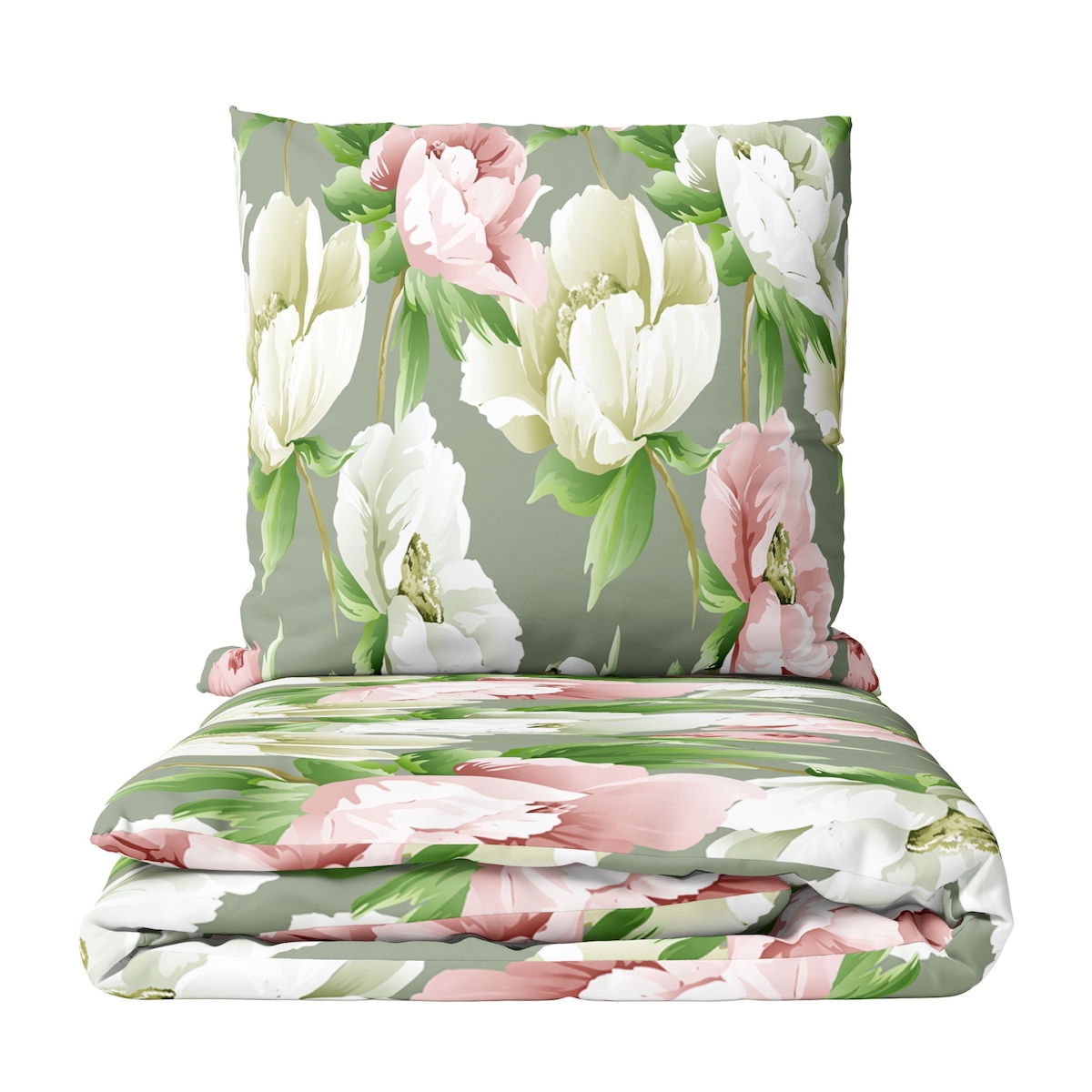 Leonado Vicenti Bettwäsche Set 135x200 cm Baumwolle Jersey Dunkelgrün Beige Geblümt mit Reißverschluss