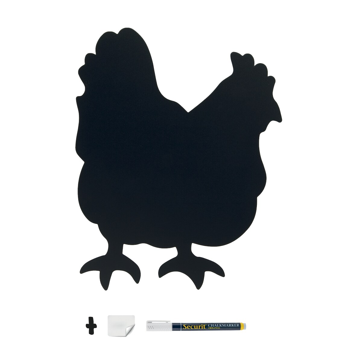 Securit® Silhouette Huhn Kreidetafel – Mit Kreidemarker + Klettband-Set für Wandmontage – 30x50 cm