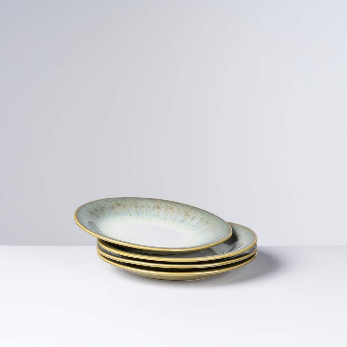 Gipfelstück Dessertteller 22 cm mit grünem Rand 4er-Set, postsicher, Serie FLUSSUFER