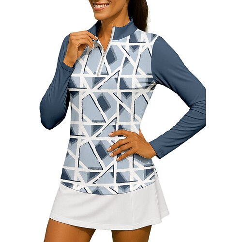 Per donna Geometrico Maglietta Maglietta sportiva Polo da golf Maglia da tennis Manica Lunga Cerniera Floreale UPF50 Resistente ai Raggi UV Alta elasticità Traspirante Tennis Golf Pickleball Collo