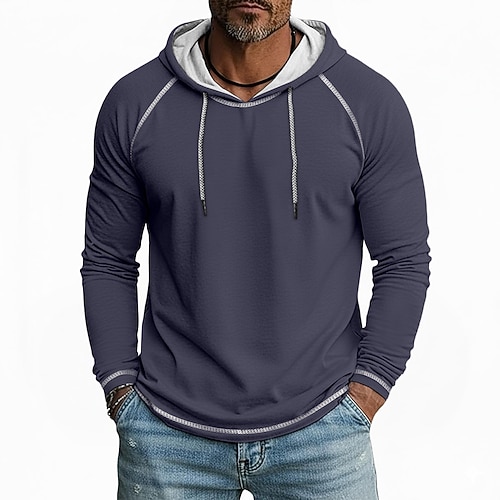 Per uomo Maglietta Felpa con Cappuccio Manica Lunga Con Cappuccio Inverno Primavera Autunno Tutte le stagioni Tinta unica Maglieria Quotidiano Sportivo Con cappuccio All'aperto Casual Casuale Blu