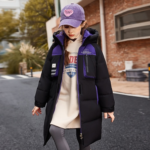 Kinder Mädchen Daunenmantel Einfarbig Mode Fellbesatz Reißverschluss Tasche Schule Mantel Oberbekleidung 4-12 Jahre Herbst Schwarz Rosa Rote