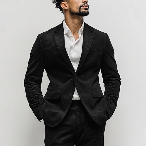Herren Geschäft Lässig Tweedanzüge Gekerbtes Revers Schwarz Burgunderrot Mode Täglich Gestreift Figurbetonter Schnitt 2-teilig Einreihige Zwei-Knopf-Jacke