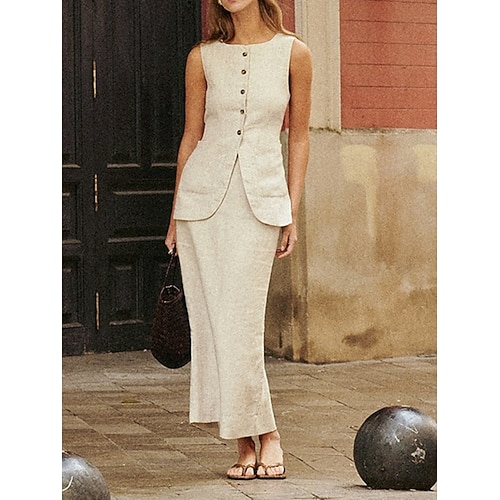 Per donna Set di biancheria in cotone Set da due pezzi Set di gonne Senza Maniche Dolcevita Collo quadrato Semplice Elegante Moda Streetwear Casuale Quotidiano All'aperto Nero Bianco Beige Estate