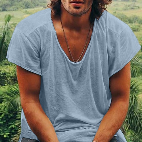 Per maschio Manica Corta Scollo a V Estate Colore Solido / Tinta Unita Tempo libero Casual Quotidiano blu navy Giacinto Nero Maglietta Top per Uomo