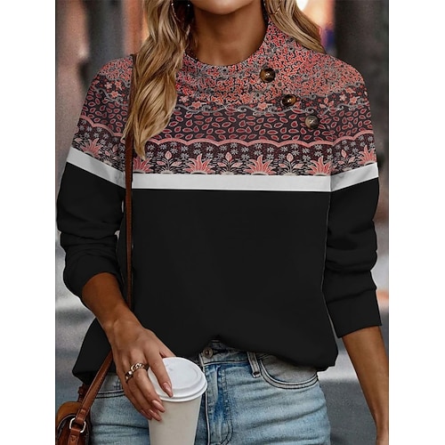 Per donna Felpa Pullover Grafico Geometrico Astratto Casual Manica Lunga Girocollo Top Regolari Casuale Streetwear Abbigliamento Quotidiano Rosso violaceo Nero Bianco Rosso Verde Primavera Autunno