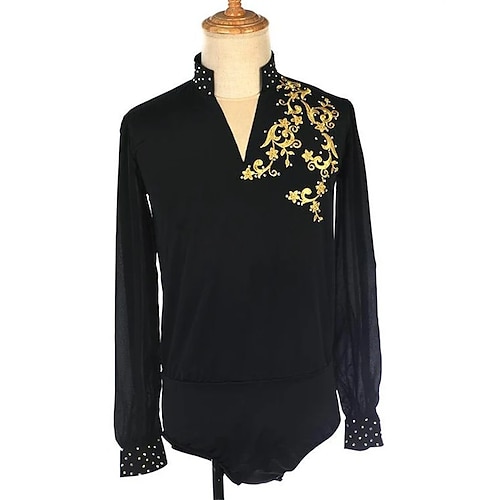 Maglia da pattinaggio artistico Per uomo Ragazzi Pattinaggio sul ghiaccio Top Nero Patchwork Spandex Alta elasticità Allenamento Competizione Vestiti da pattinaggio sul ghiaccio Classico Cristallo