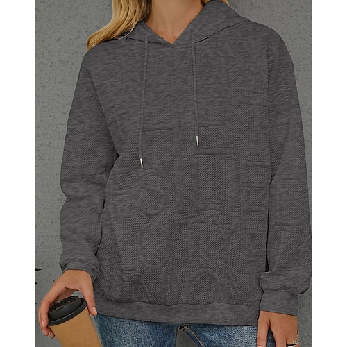Per donna Felpa con cappuccio Semplice Casual Manica Lunga Con Cappuccio Top Regolari Ferie Uscire Patchwork Nero Bianco Rosa Grigio scuro Grigio Autunno Inverno