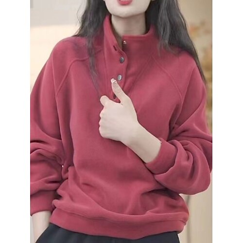 Per donna Felpa Pullover Semplice Casual Manica Lunga Dolcevita Top Regolari Streetwear Abbigliamento Quotidiano Bottoni Nero Bianco Rosso Viola Verde Autunno Inverno