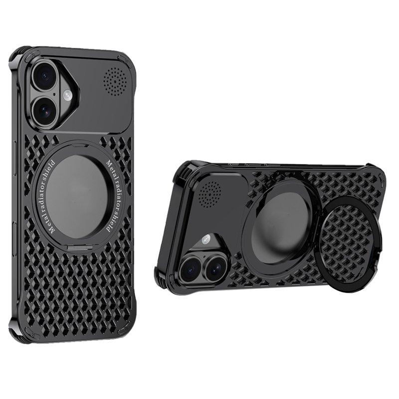 R-JUST RJ64 Mobilskal till iPhone 16 Aluminium Svart med Kickstand