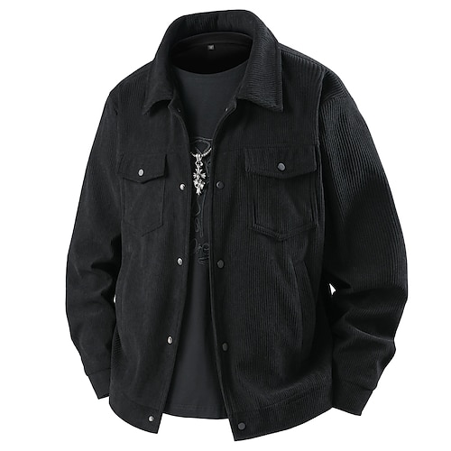 Per uomo Camicia di Velluto a Coste Testurizzato Casuale Affari Bavero Classico Manica Lunga Vintage Moda Blocco di colori Tasca Caldo Autunno Inverno Autunno Inverno Vestibilità regolare Nero