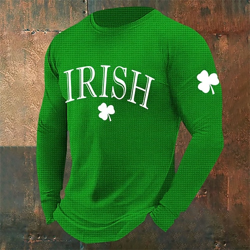 Giorno di San Patrizio San Patrizio Festa di San Patrizio Per uomo Trifoglio Camicia a nido d'ape Maglietta Manica Lunga maglietta Girocollo Camicia Sport Moda Classico Quotidiano Vacanza Feste Nero