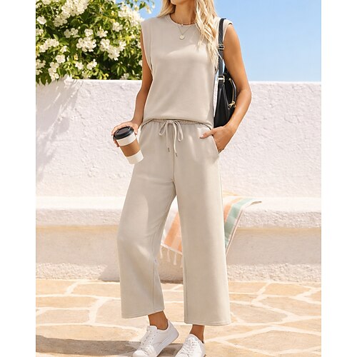 Per donna Set di Pantaloncini Senza Maniche Girocollo Tinta unica Moda Streetwear Quotidiano Casuale Quotidiano All'aperto Nero Cachi Beige Estate Vestibilità regolare