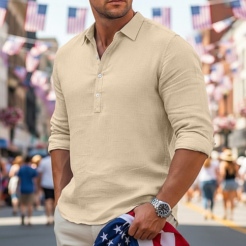 Per uomo Camicia Camicia di lino Camicia Estiva Abbigliamento da spiaggia Semplice Vacanza Casuale Nero Bianco Blu Cachi Manica Lunga Bavero Primavera Estate Abbigliamento