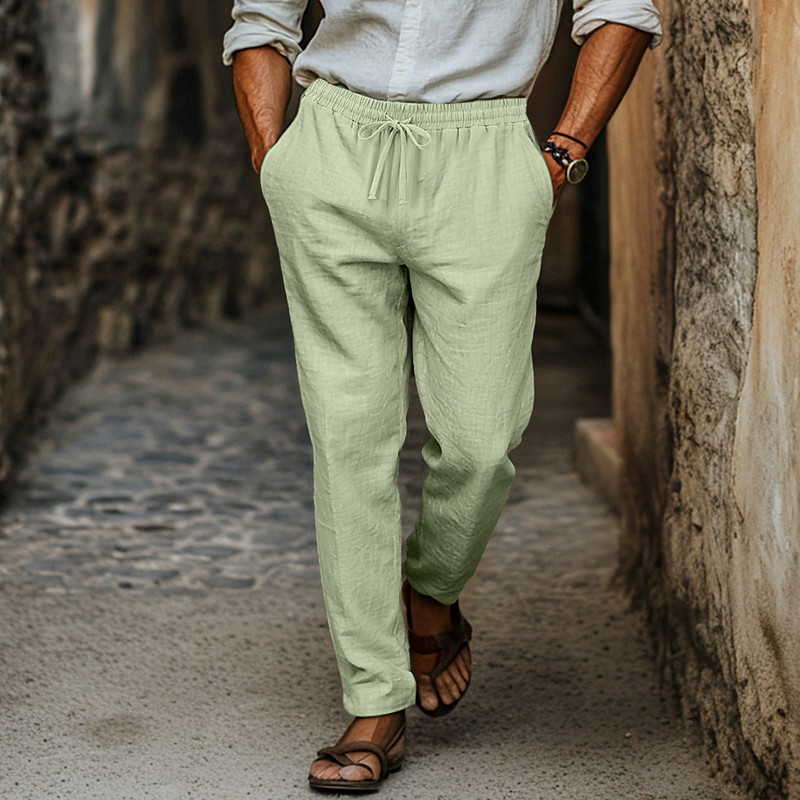 Men's Linen Pants Trousers Pocket Drawstring Plain Comfort Breathable Daily Streetwear Vintage Stylish Light Khaki Black Micro-elastic