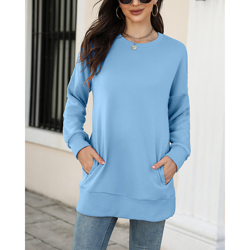 Women's Pullover Sweatshirt Plain Streetwear Casual Long Sleeve Crew Neck Regular Tops Street Dailywear Blue Light Green Pink Fall Winter
