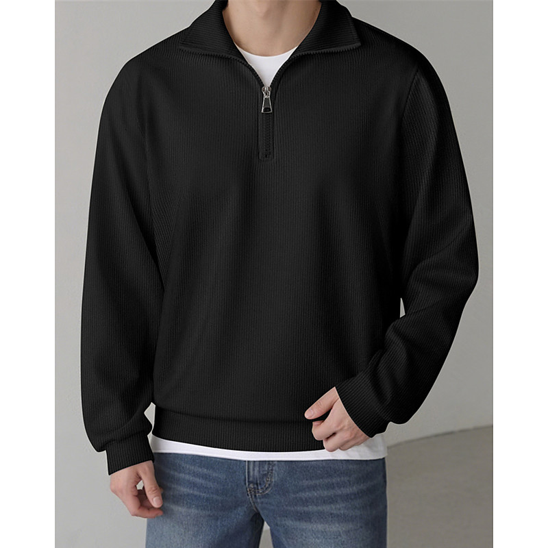 Men's Polo Shirts Quarter Zip Polo Daily Wear Date Quarter Zip Long Sleeve Fashion Basic Plain Zipper Spring Fall Regular Fit Apricot Black Brown Gray Polo Shirts