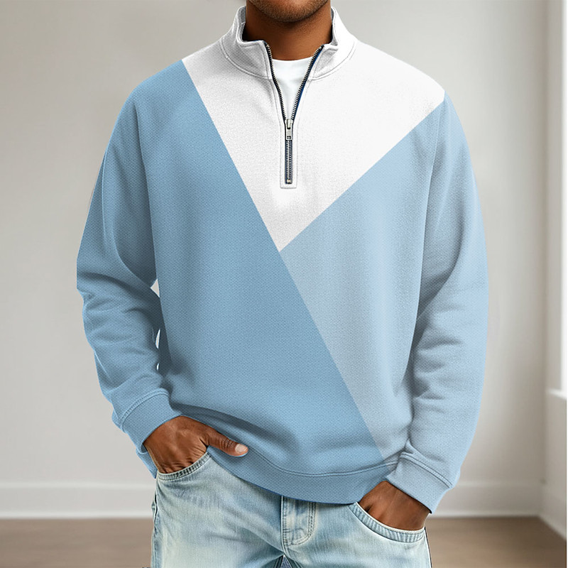 Men's Color Block Zip Polo Shirts Long Sleeve Polo Shirts Grandad Collar Casual School Athleisure Holiday Daily Wear 3D Print Quarter Zip Polo Spring Fall Winter Blue Purple Brown