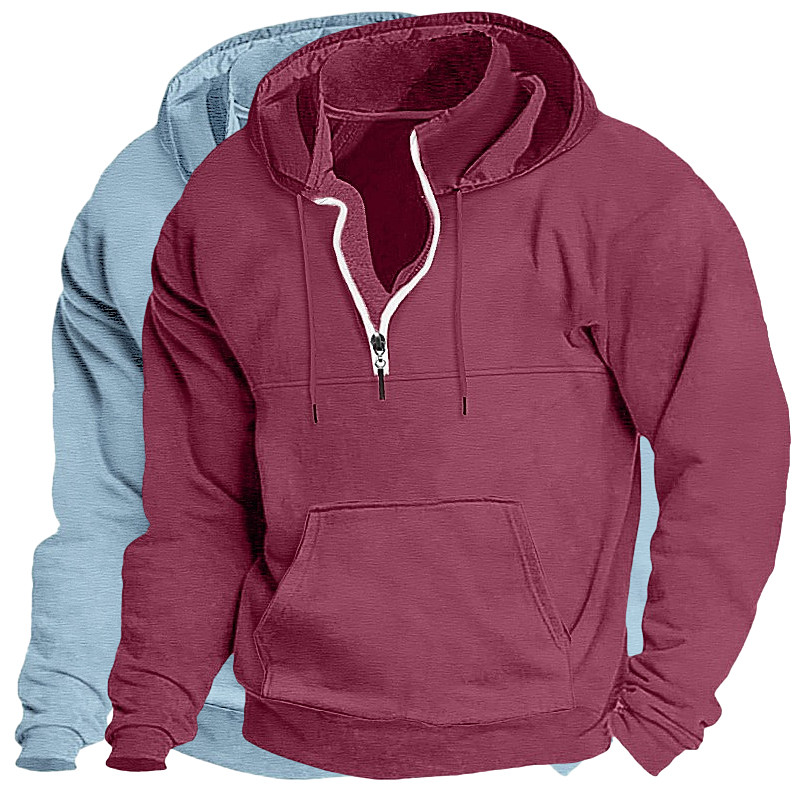 Men's Sweatshirt Pullover Hoodie Sweatshirt Quarter Zip Sweatshirt Wine Red Black Light Green Army Green Navy Blue Standing Collar Plain Patchwork Casual Daily Sports Outdoor Streetwear Cool