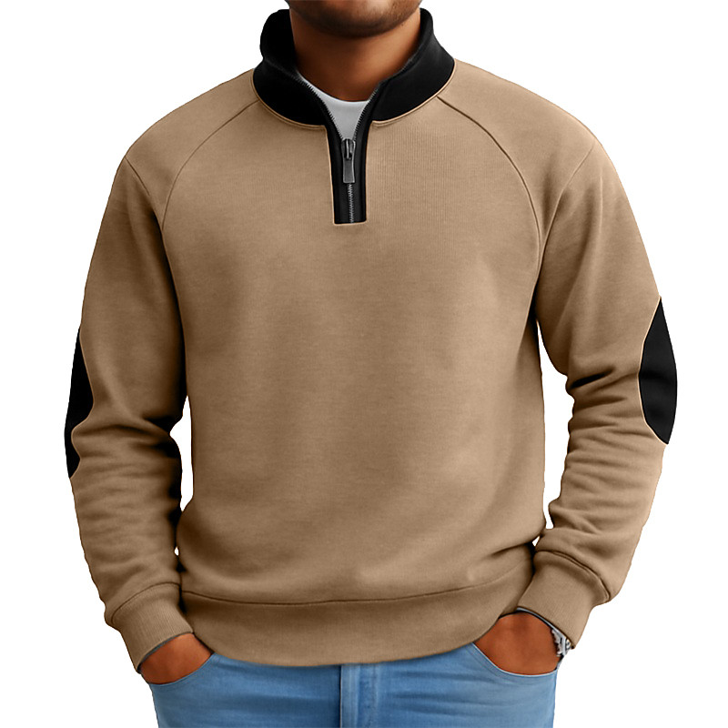 Men's Sweatshirt Pullover Hoodie Sweatshirt Quarter Zip Sweatshirt Black Navy Blue Khaki Light Grey Dark Gray Standing Collar Plain Patchwork Casual Daily Sports Outdoor Streetwear Cool Sportswear