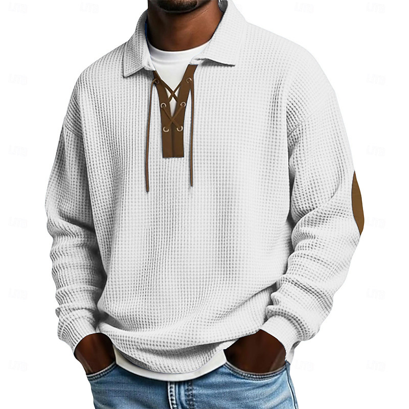 Men's Waffle Polo Shirts Polo Shirts Casual Street Lapel Long Sleeve Basic Modern Plain Lace up Spring Fall Regular Fit Black White Light Green Wine Navy Blue Purple Waffle Polo Shirts