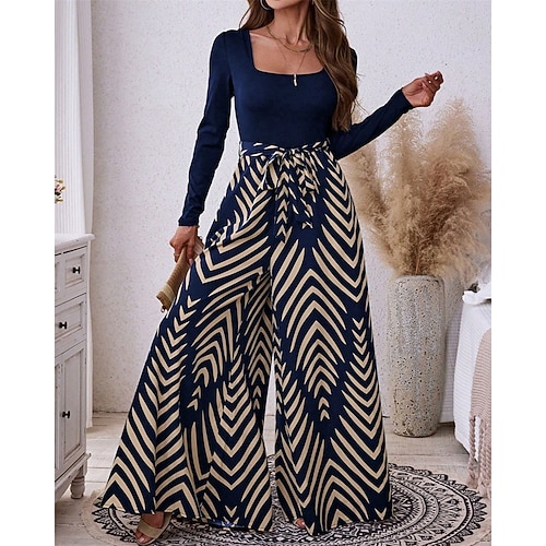 Per donna Abbigliamento da Casa Tutina Moda Sexy Casual Grafico Colore Puro Allacciato Senza schiena Pantalone Vacanza Casa Streetwear Manica Lunga Collo a U Blu Reale Estate Primavera Vestibilità su