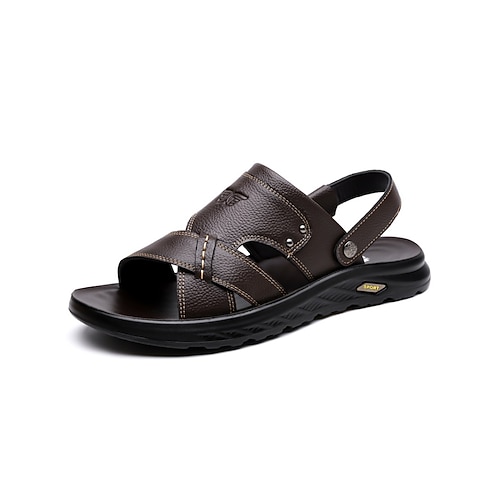 sandali da uomo in similpelle marrone scuro con cinturini incrociati, scarpe leggere da esterno per le vacanze al mare, perfette per le giornate estive attive