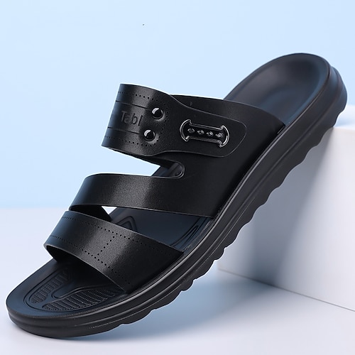 sandali da spiaggia in pelle da uomo: morbida pelle sintetica, plantare imbottito, comfort slip-on, cinturini traspiranti per uomo, ideali per spiaggia, piscina, viaggi estivi e abbigliamento casual all'aperto