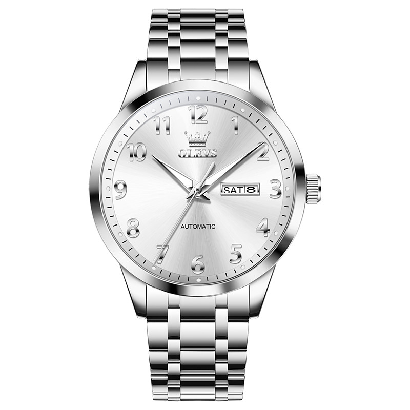 OLEVS Men Mechanical Watch Minimalist Fashion Business Wristwatch Automatic Self-winding Luminous Calendar Date Week Steel Watch