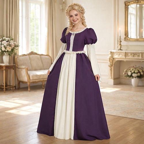 Vintage Rococò Barocco Maxi Vestito Normale A sbuffo Costumi a tema film / TV regina Elisabetta Principessa Collo quadrato Costume Reale Halloween Carnevale Mascherata Feste Halloween Performance