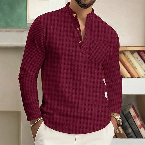 Per uomo Maglietta Waffle Camicia a nido d'ape Maglietta con bottoni Maglietta Manica Lunga Henley Primavera Autunno Semplice Moda Designer Essenziale Bottonato Vacanza Streetwear Uscire Nero Vino