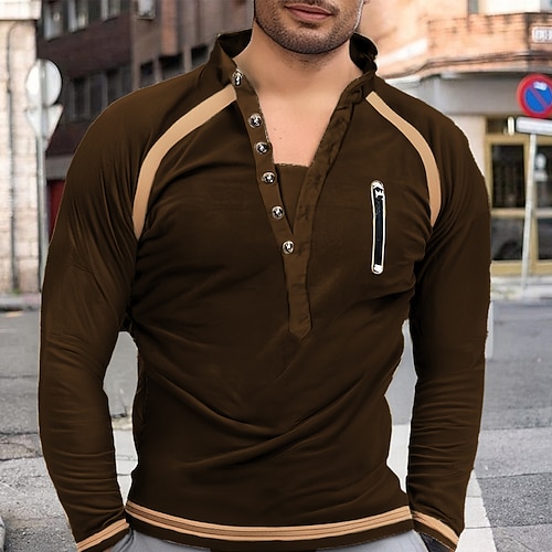 Per uomo Maglia Vino Blu Cachi Grigio chiaro Grigio scuro Colletto Mao Blocco di colori Patchwork Sport Outdoor Quotidiano Ferie Cotone Streetwear Essenziale Casual Autunno Inverno Abbigliamento
