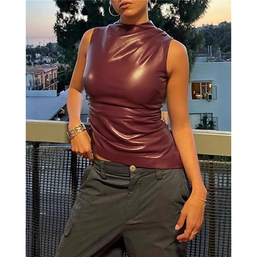 Per donna Canotta Canotta a canotta Semplice Vintage Elegante Casual Senza Maniche Girocollo Top Regolari Quotidiano Ferie Abbigliamento mare Arricciato Vino Estate Primavera